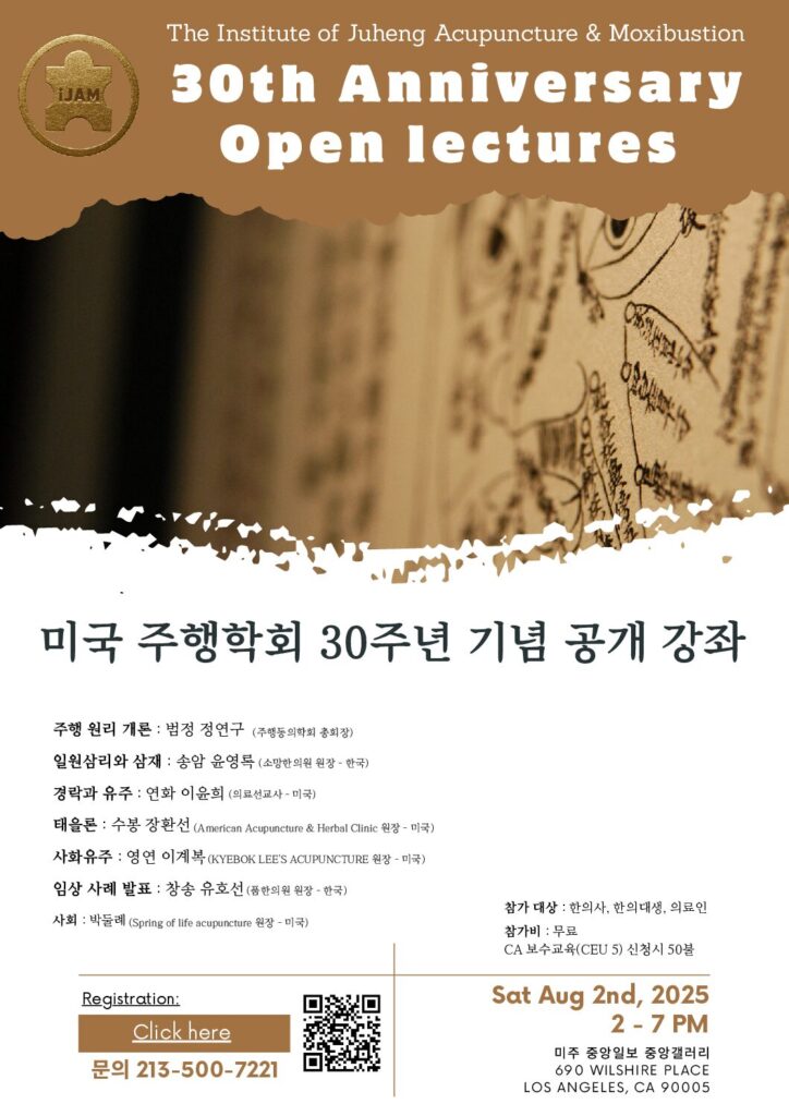 Institute of Juheng Acupuncture & Moxibustion (IJAM) is an organization started in 1995 in S. Korea and in the U.S. with an aim to restore and teach the original principles of Eastern Medicine. IJAM is passionate about making the world a better place by advocating, preserving, practicing, and teaching the true principle of Eastern Medicine for the holistic well-being of human life.